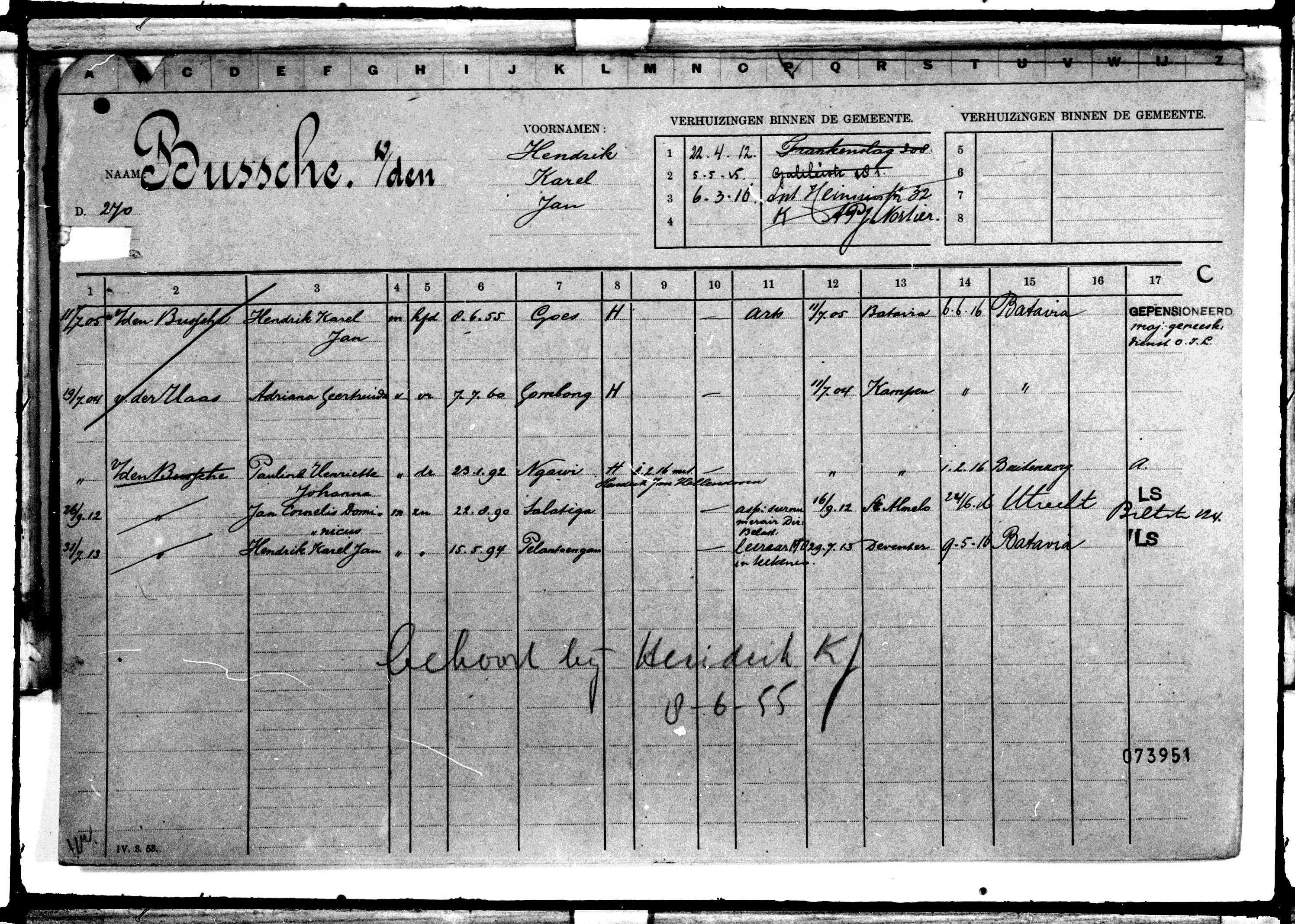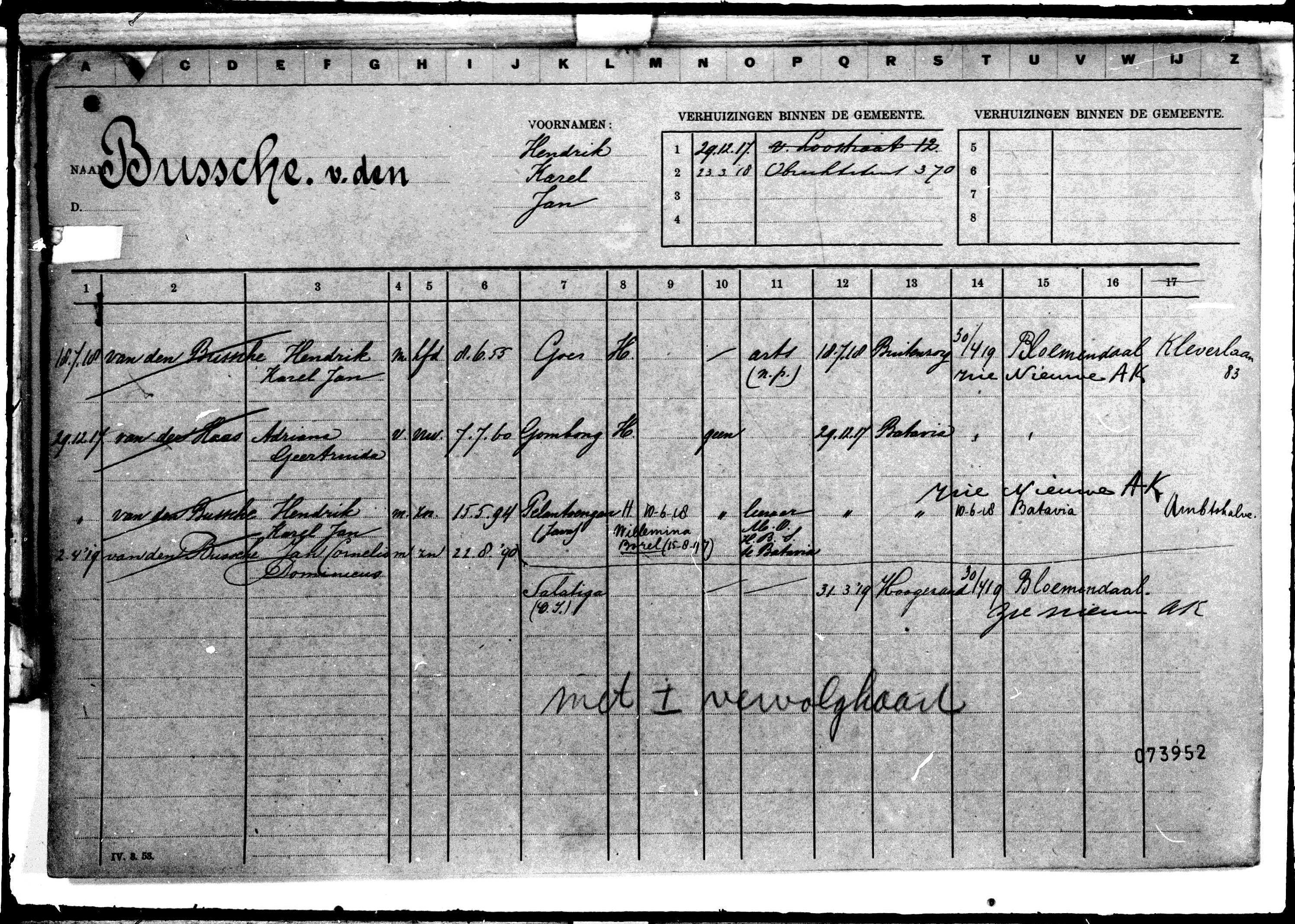 Henriette Carolina Johanna Dominicus van den BusscheHenriette Carolina Johanna Dominicus van den Bussche  * 23-04-1861 Goes † 23-10-1885 Poerworedjo ∞ Hendrik Karel Jan van den Bussche, 20-11-1884 Amsterdam, 1 kind |