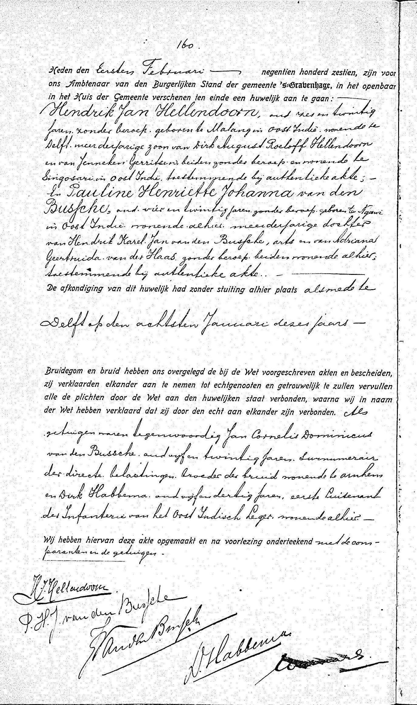 Trouwakte Jan Hellendoorn en Pauline vsn den Bussche